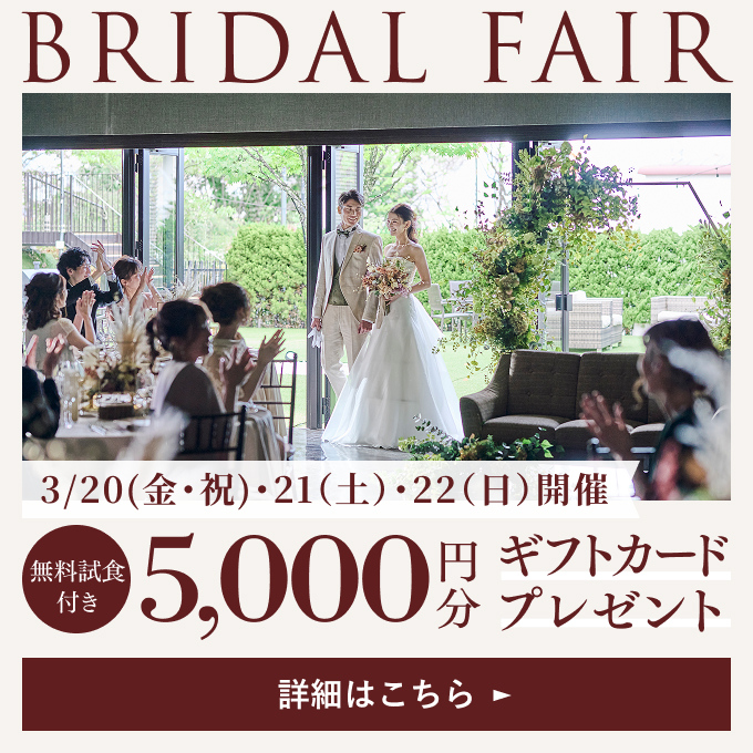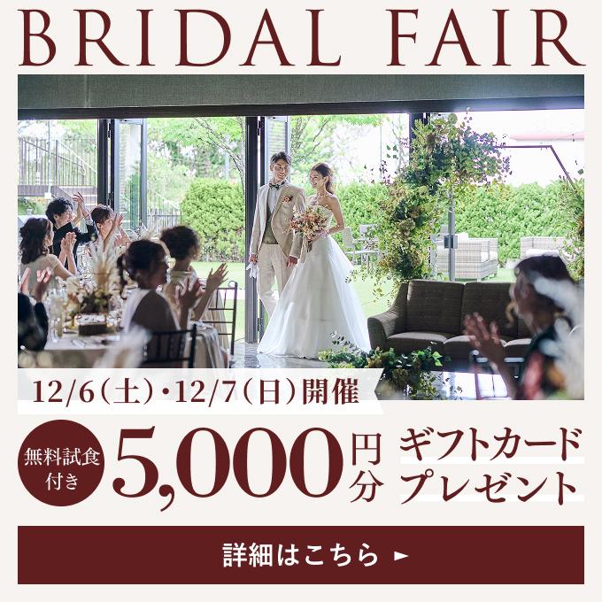 結婚式という楽しく幸せな時間を大切な方におすそ分け。ご家族やご親戚、ご友人へ当会場をご紹介ください。ご紹介者様とご成約いただいたカップルにプレゼントをご用意致しております。