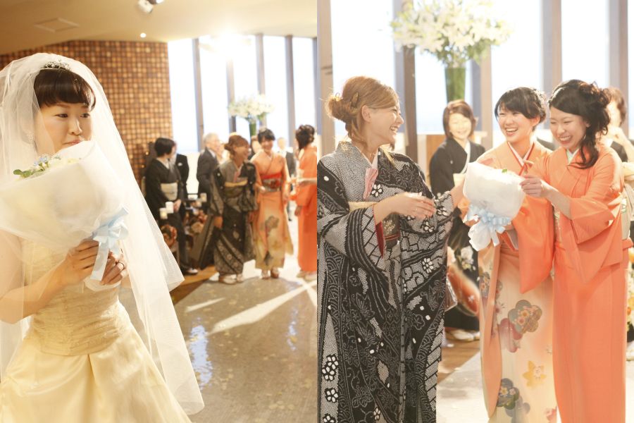 フラワーシャワーの祝福の中、笑顔で退場です。
