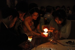 照明を暗くしてキャンドルを目立たせロマンチックな雰囲気に…