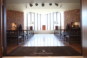 昼は外の明るさに合わせて照明も明るく、会場全体を明るく、綺麗に