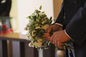 新婦さまに渡すブーケを持った新郎さまの手元、結婚証明書へのサイン中の手元、ご両親への手紙を読んでいる新婦さまの手元。