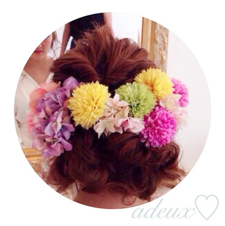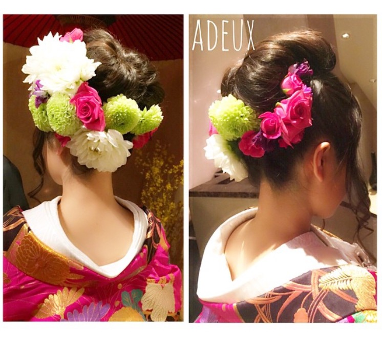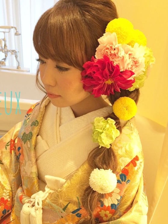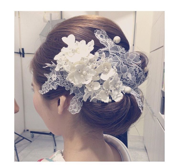 お花とかんざし、レース、羽などを使ってみても可愛いですよ!!