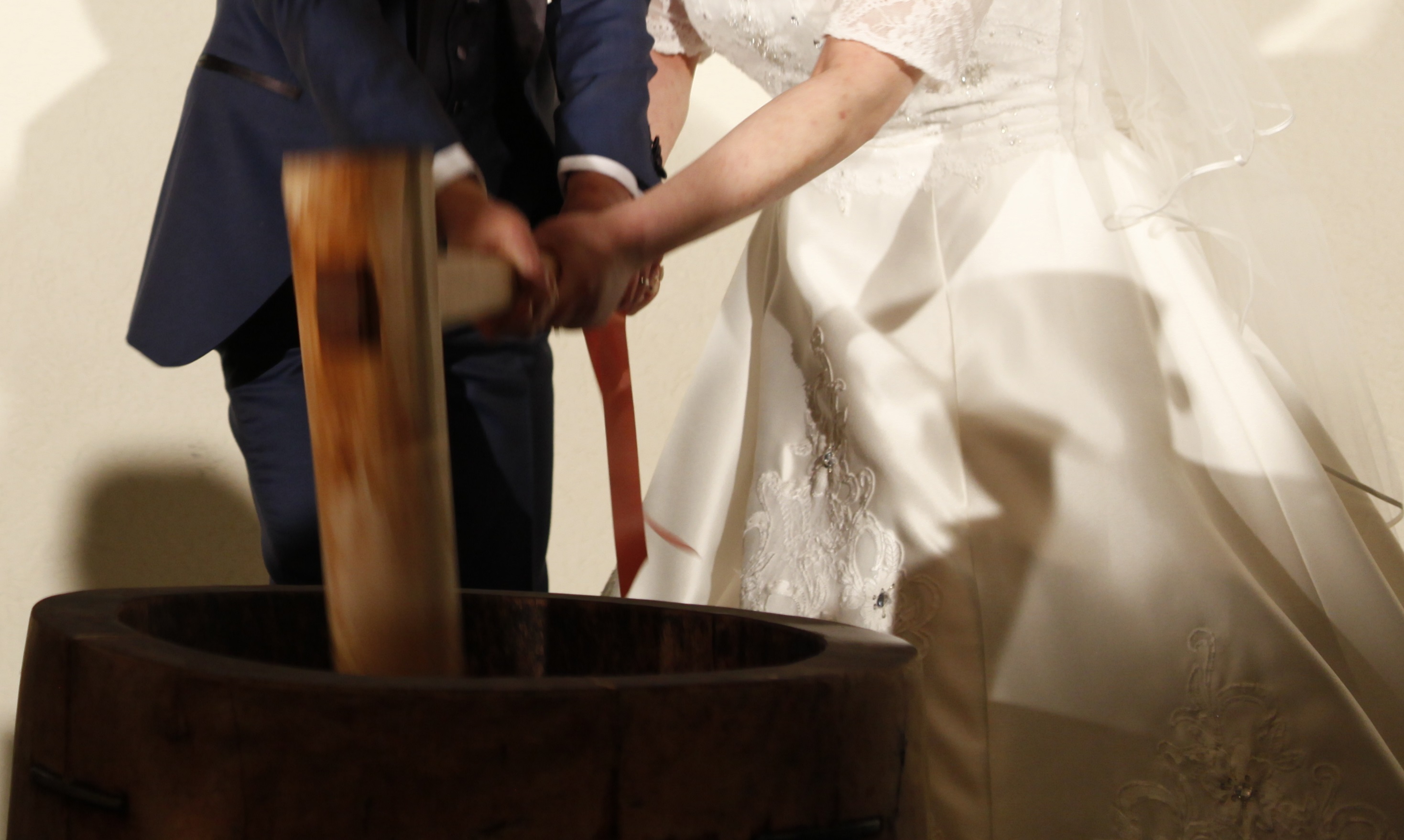 新郎新婦様の共同作業として ウエディングケーキ入刀…ではなく!