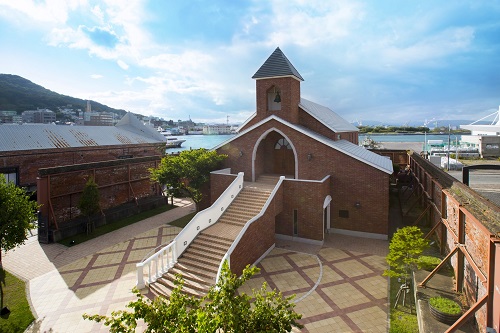 函館金森倉庫群に建つ独立型チャペル「リラノートチャーチベイ函館」です。