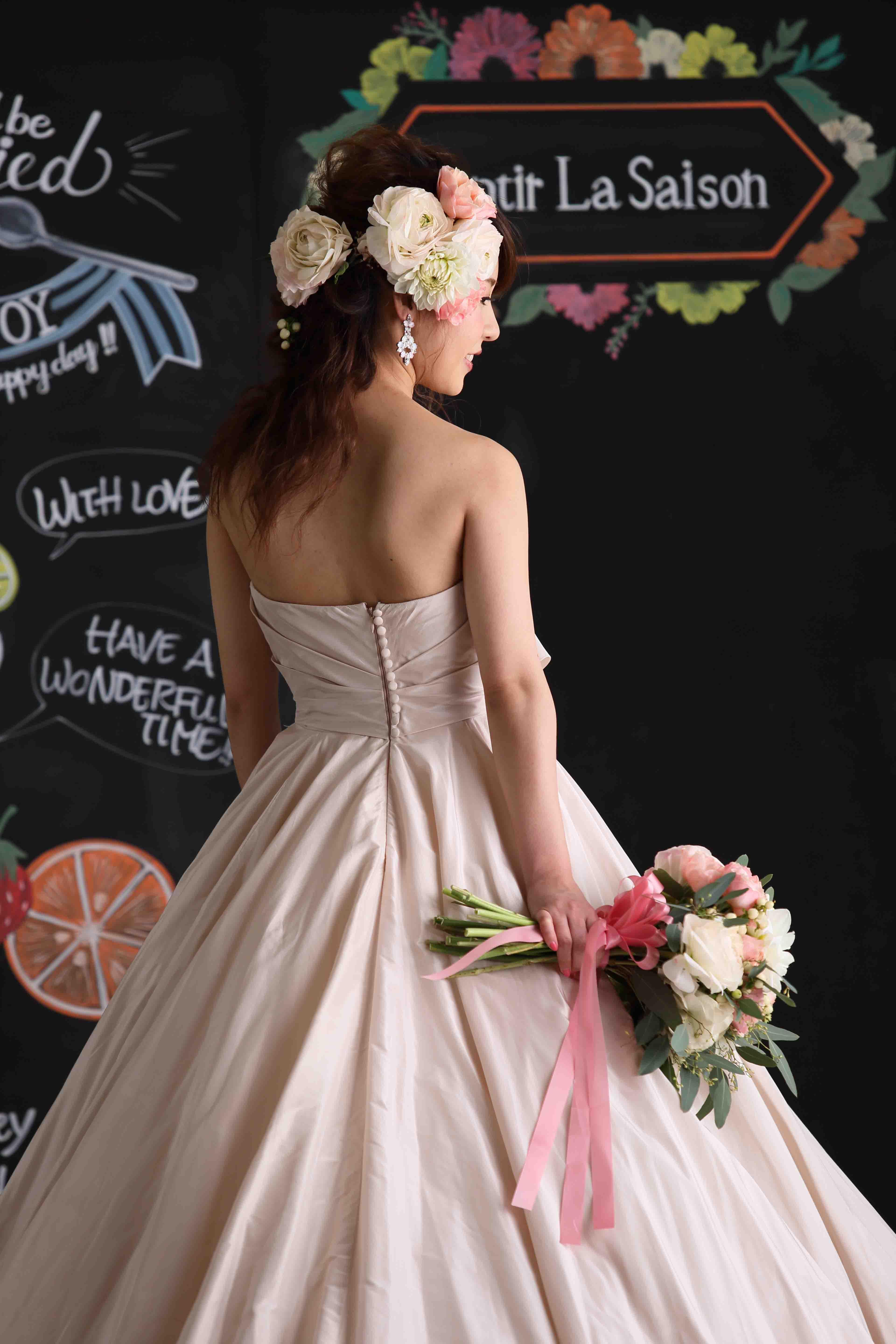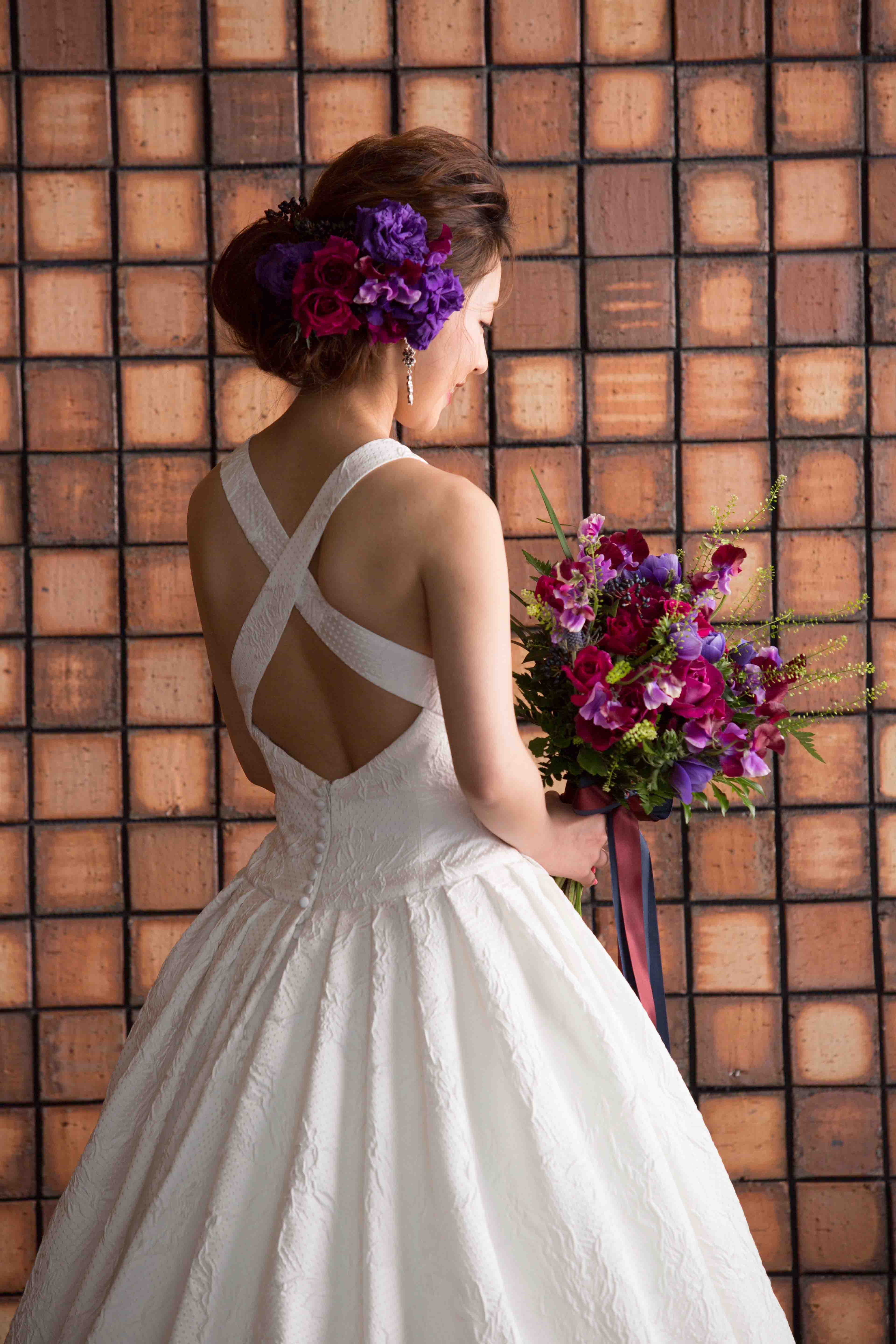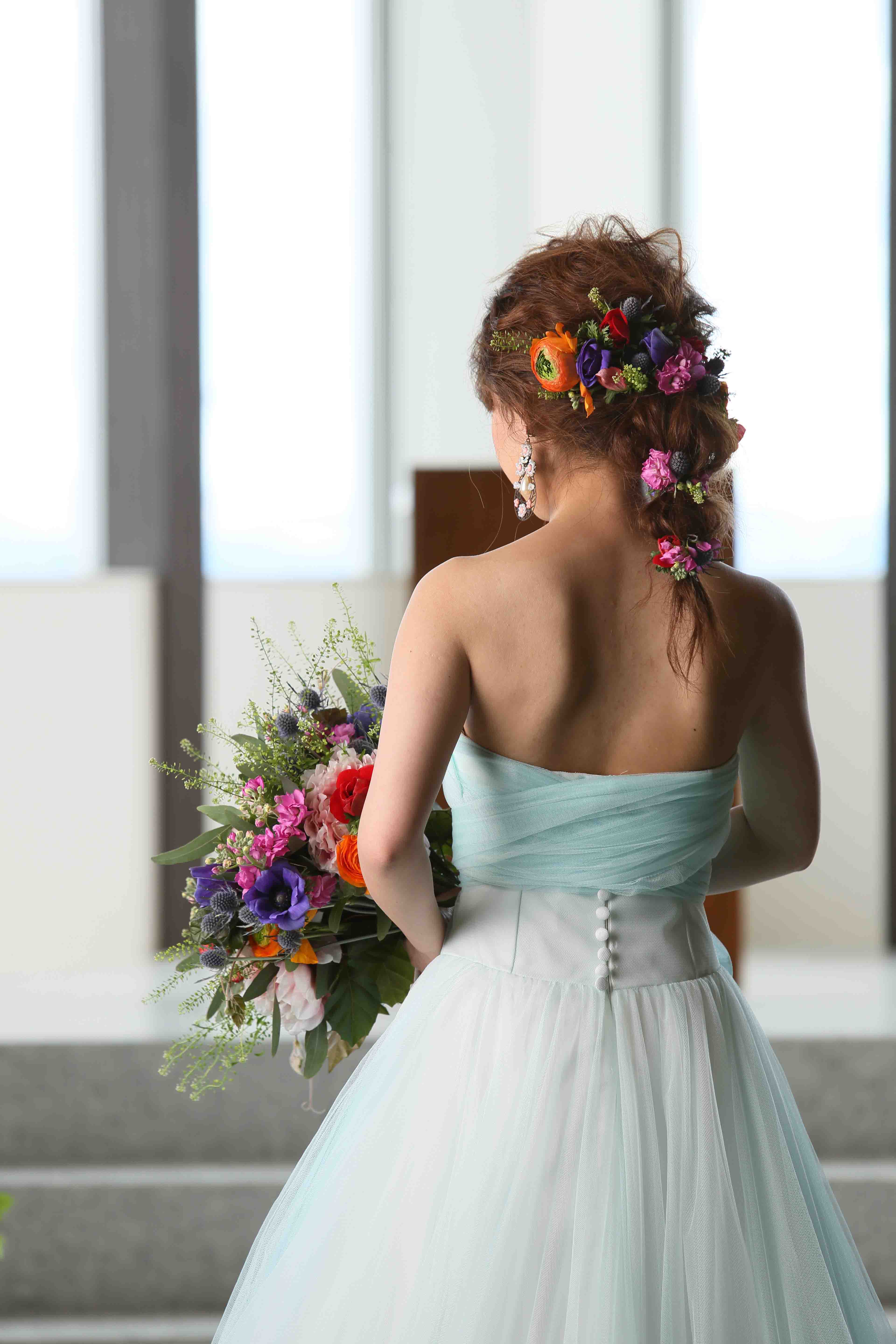 ブーケと頭につける飾りをお揃いにして撮影しました
