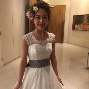 パーティ入場の時は腰にぺプラムを付けて可愛く