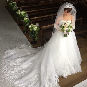 挙式はトレーンを付けて後ろ長めにキレイめに