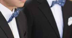 お揃いのブルーの蝶タイとブルーのドレスに身を包んだご友人様は、
